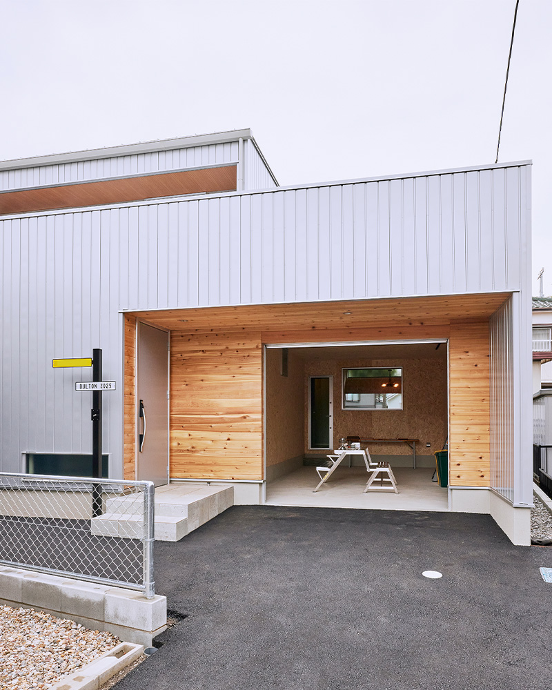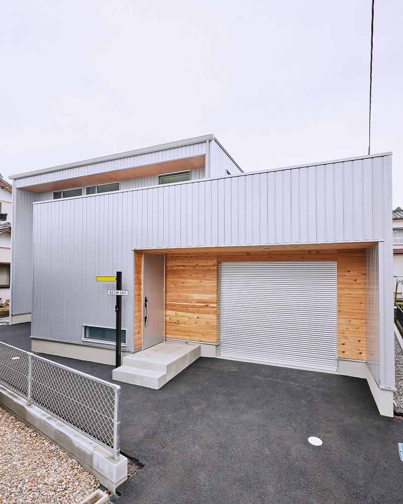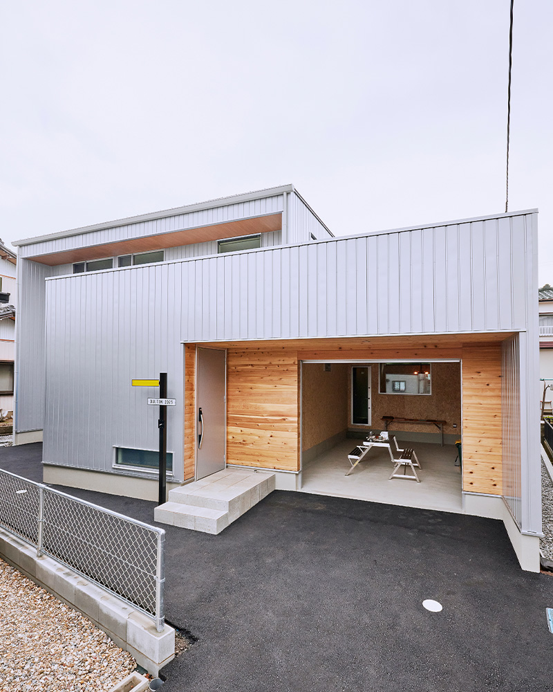 外壁には、ダルトンホームを代表する金属サイディング・シルバーのガルバリウム鋼板を採用。