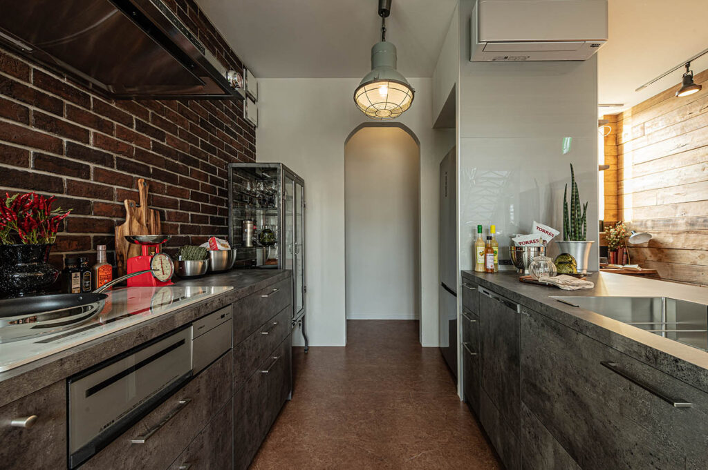キッチン横に配置し、アーチ状の開口から繋がることで、空間に抜け感と広がりを生み出しています。